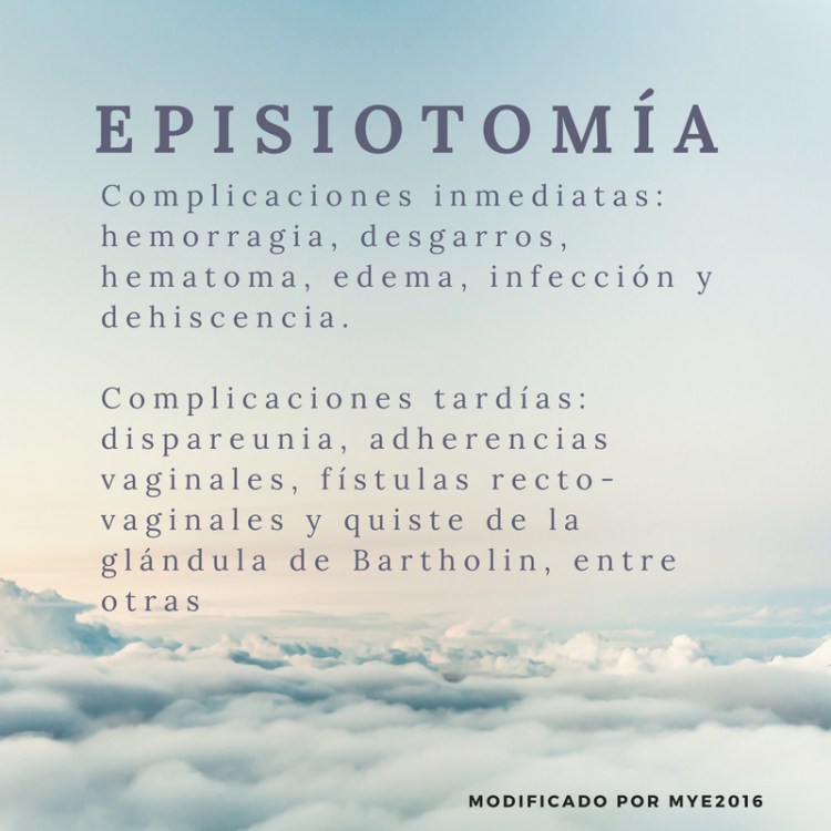 De forma resumida, ya hemos observado en que consiste esta técnica, la frecuencia de la misma en nuestro país, así como la necesidad de su oportuna selección a la hora de efectuarla, sin dejar de señalar sus posibles complicaciones. Me gustaría puntualizar que si existen ciertos factores que pueden influir en la necesidad de la realización de una episiotomía (o en su defecto de la aparición de desgarros), como son: la edad gestacional mayor de 41 sg (semanas de gestación), primiparidad, infecciones genitales previas, trabajo de parto prolongado, múltiples exploraciones vaginales y también se observa que en los partos que se inician de forma espontánea hay menos porcentaje de episiotomías que los estimulados o inducidos.