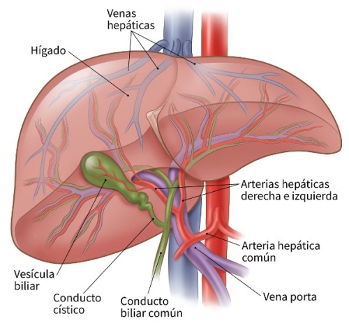 Funcionalmente, es a través de la arteria hepática como la sangre oxigenada, que llega del corazón, accede a este órgano, y de la vena porta, la sangre rica en nutrientes desde el intestino. Secretor de la bilis, descompone las grasas del intestino delgado durante la digestión, además de depurar toxinas, almacenar vitaminas y glucógeno, amén de otras cosas.